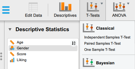1. In the ‘T-Test’ menu select Independent Samples T-Test from the ‘Classical’ list.