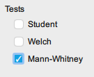1. Follow Steps 1-3 from the independent t-test section and then select the Mann-Whitney U option in the ‘Tests’ menu.